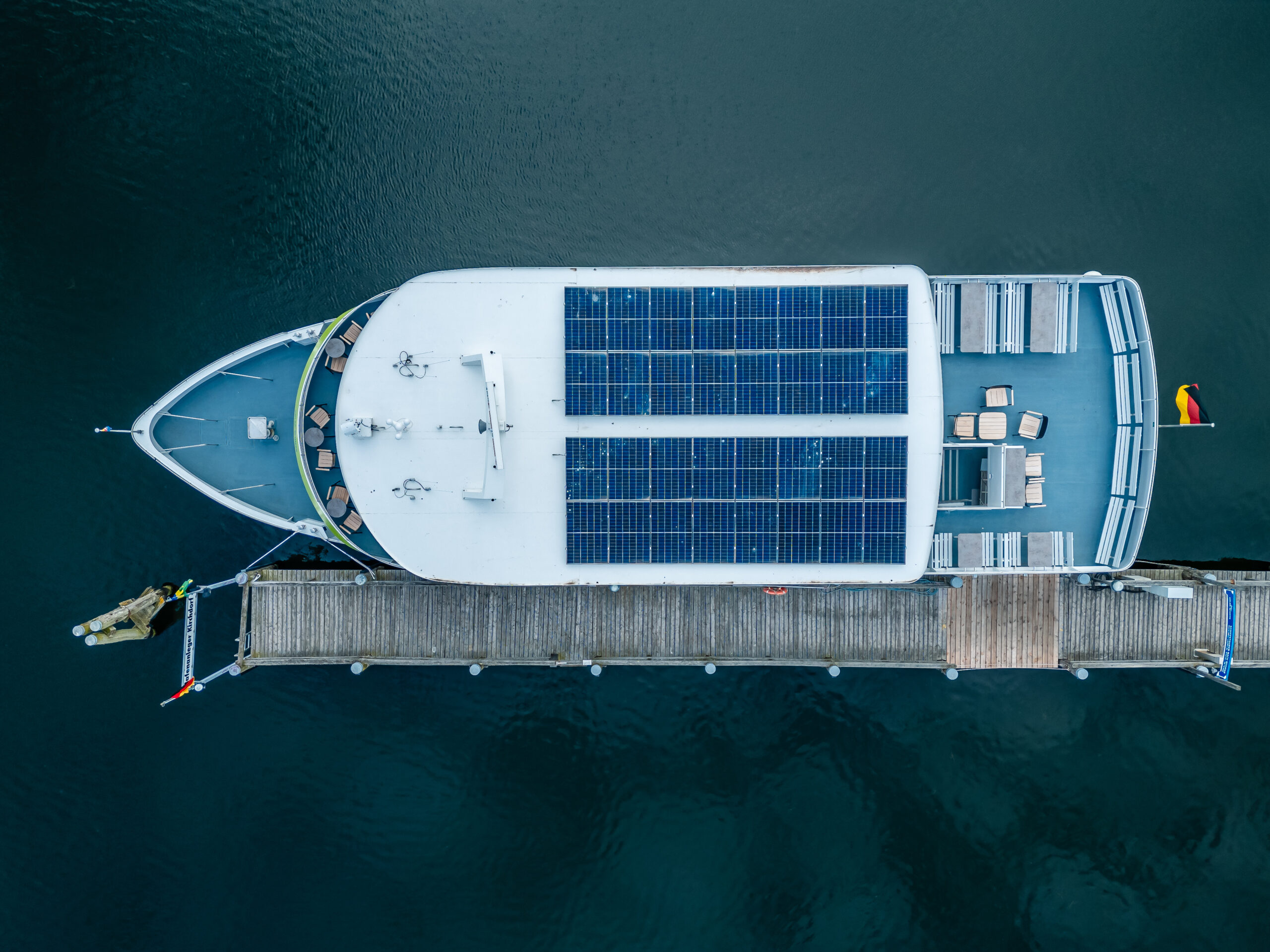 Die Adler nature wird vollektrisch angetrieben. 20 Batteriemodule (Lithium Ionen) des deutschen Herstellers BM7 sorgen mit einer Kapazität von 1448 Mw/h für Co2-freies Fahren. Zusätzlich erzeugt eine PV-Anlage tagsüber den Strom für den weiteren Bordverbrauch für Gastronomie, Licht oder sonstige Einrichtungen.